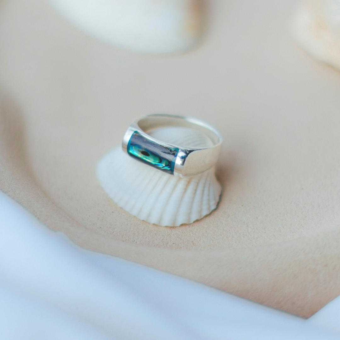 Anel de Abalone natural em prata 925