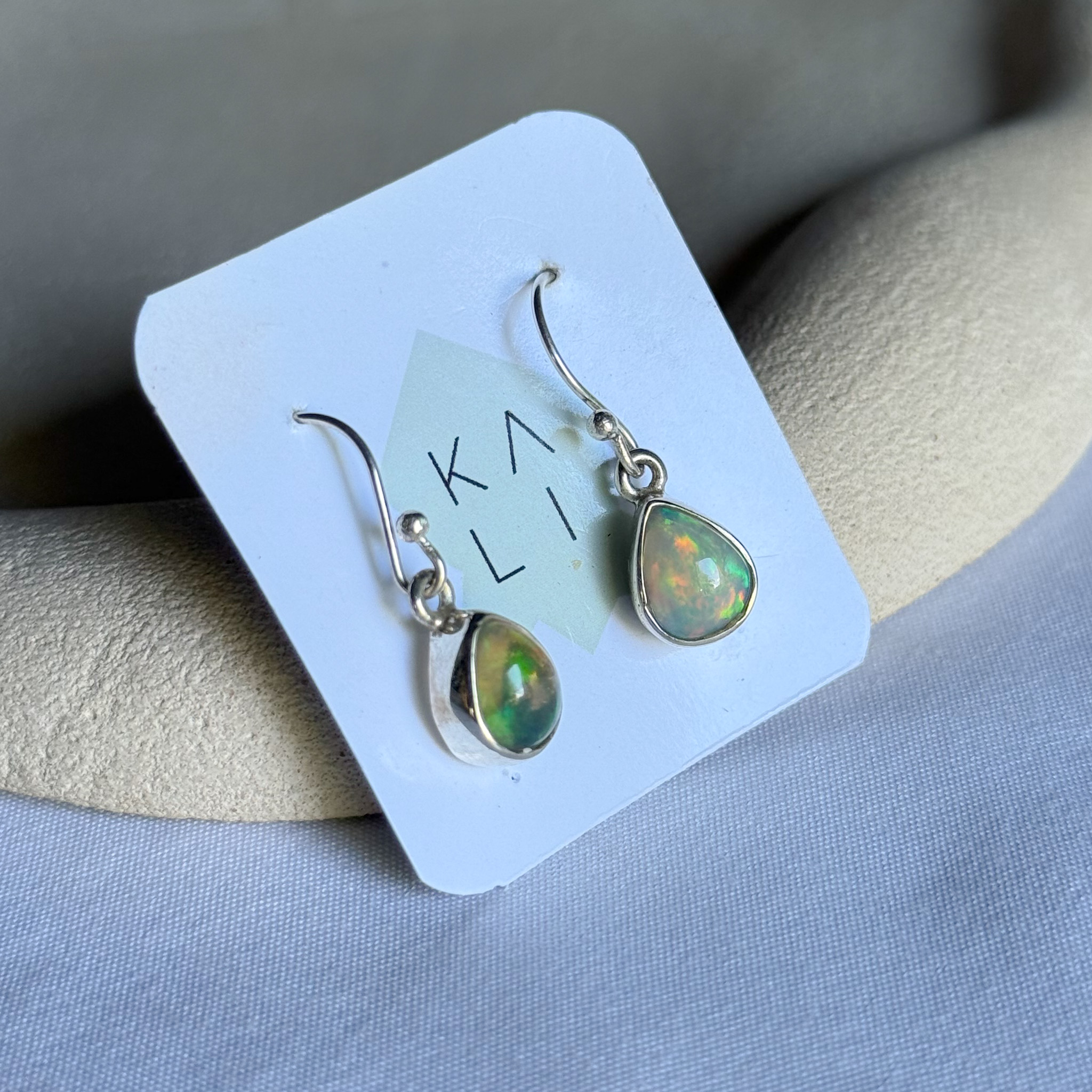 Brinco de Opala da Etiópia natural em prata 925